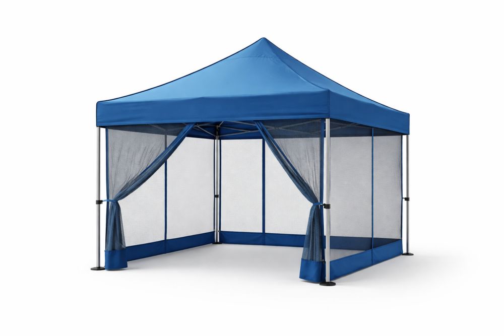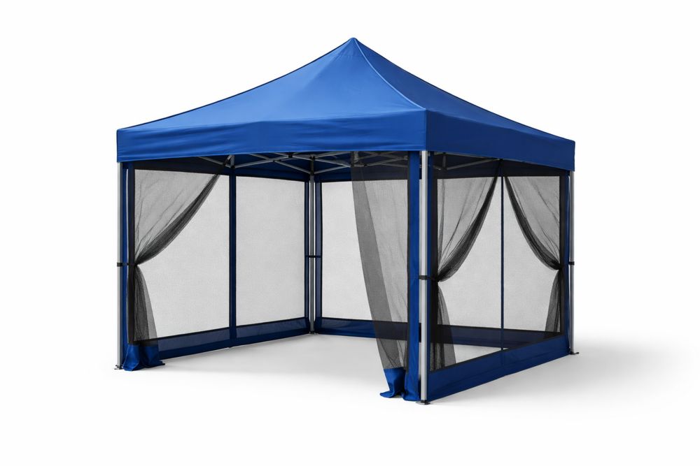 Tente de jardin en polyester et acier avec moustiquaire 3x3x2.5m Bleu