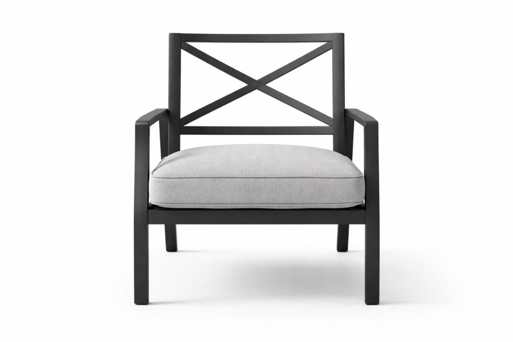 Fauteuil en aluminium noir avec coussin en polyester gris