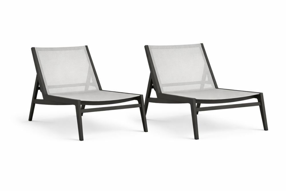 Paire de chaises extérieures en aluminium noir et polyester gris