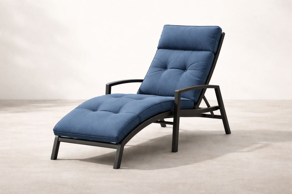 Chaise Longue Extérieure en Bois de Teck avec Coussin Noir
