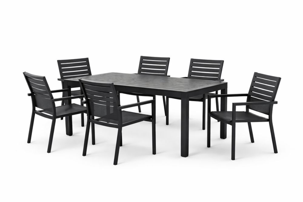 Ensemble de salle à manger extérieur en aluminium noir 7 pièces