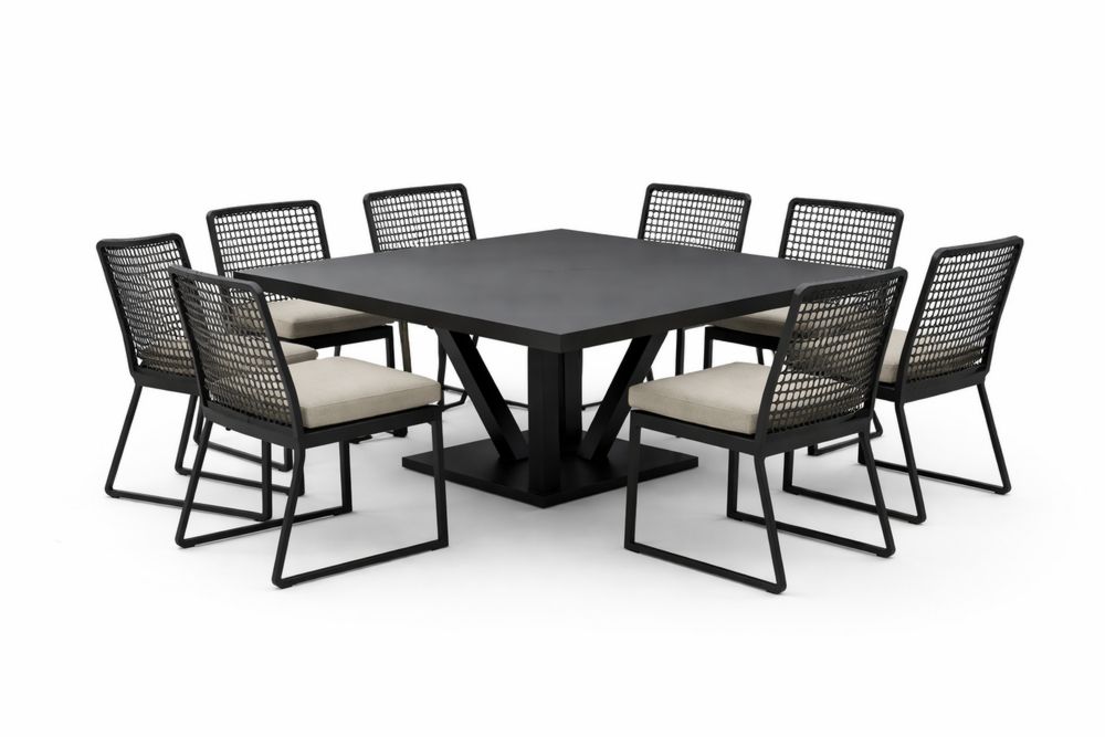 Table et 8 Chaises en Aluminium et Résine Noir