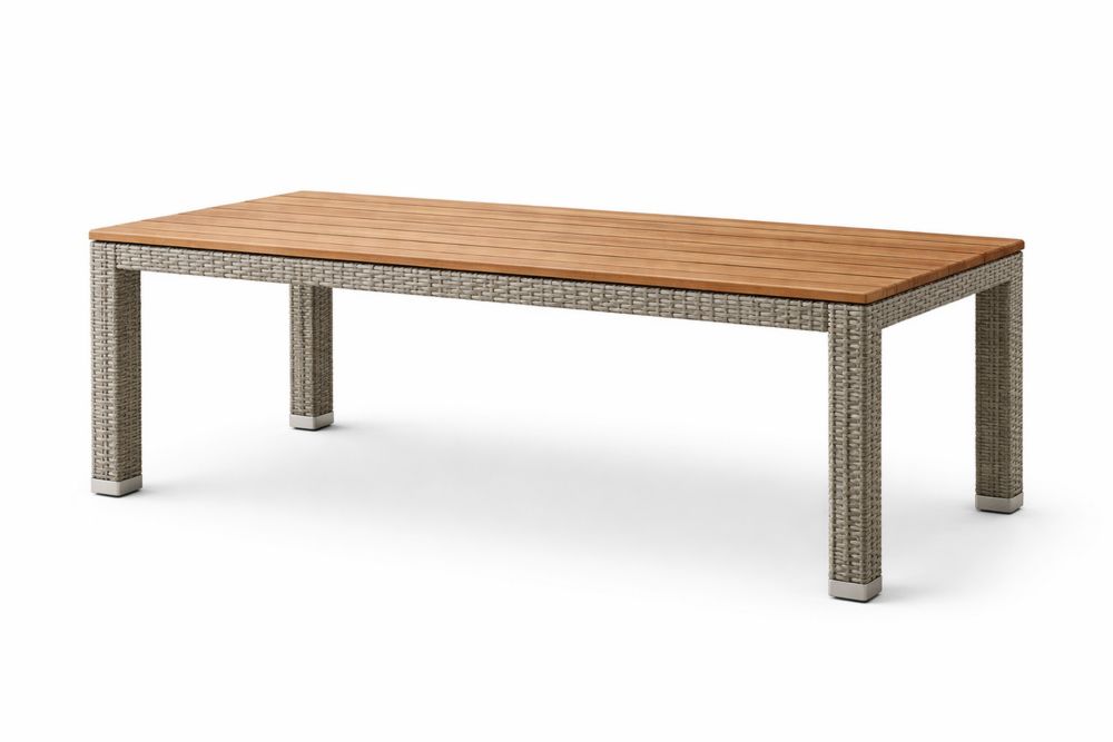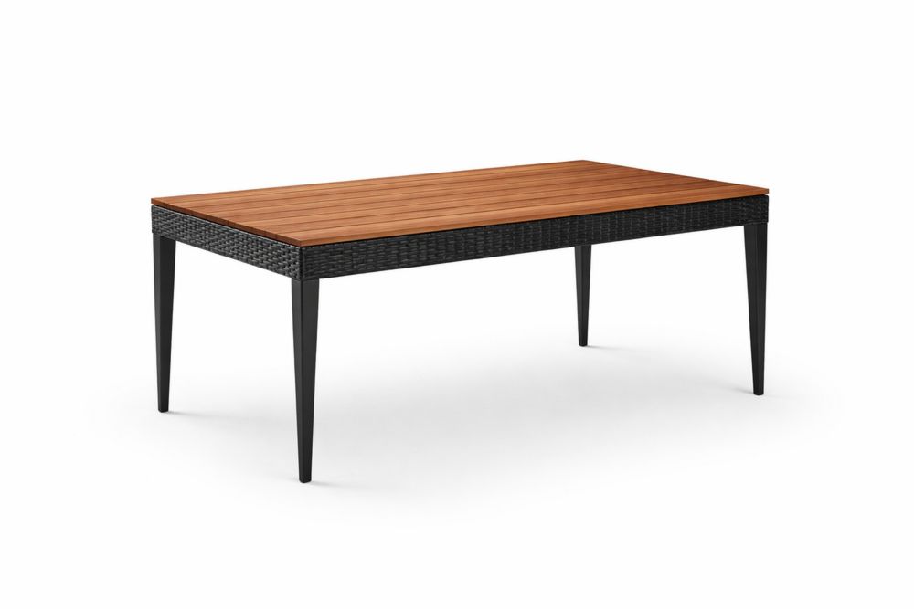 Table rectangulaire en teck et résine tressée 200x100x75 cm