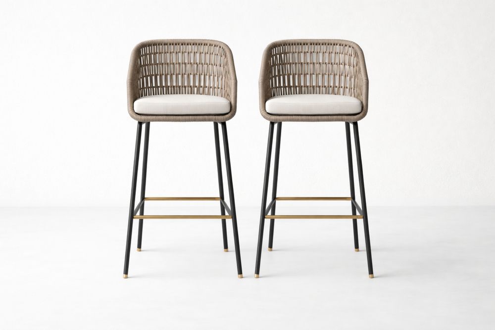 Tabourets de bar en rotin et aluminium avec assise en polyester