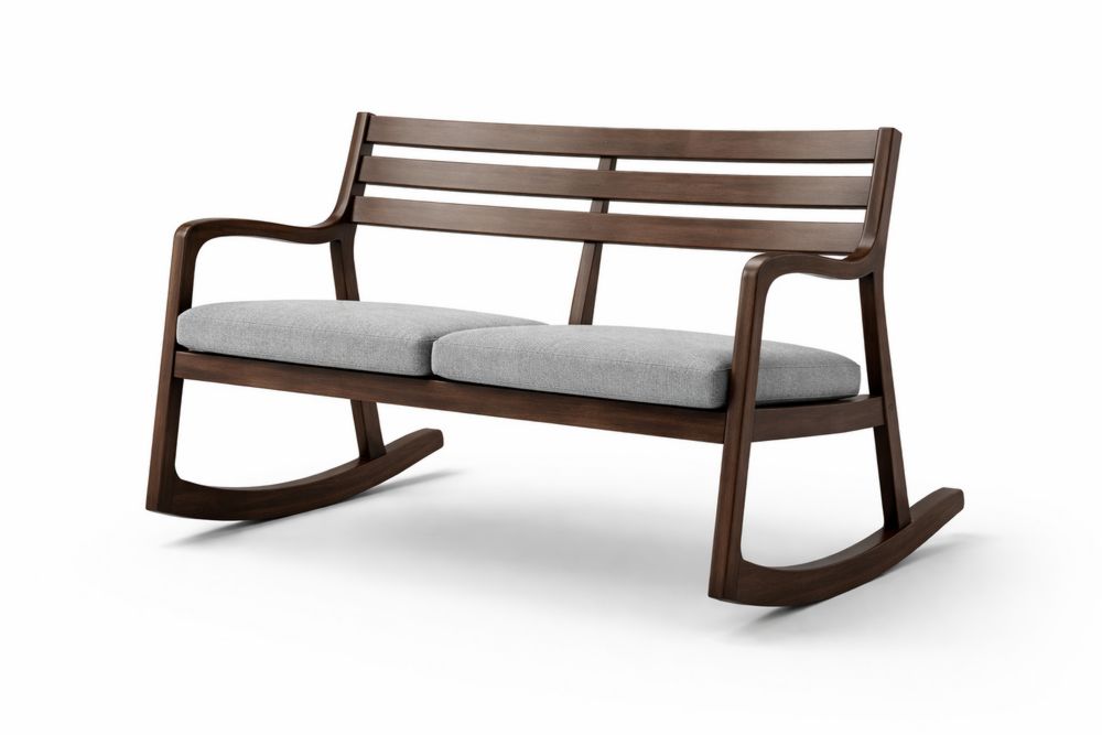 Banc à bascule en bois massif avec coussins en polyester gris