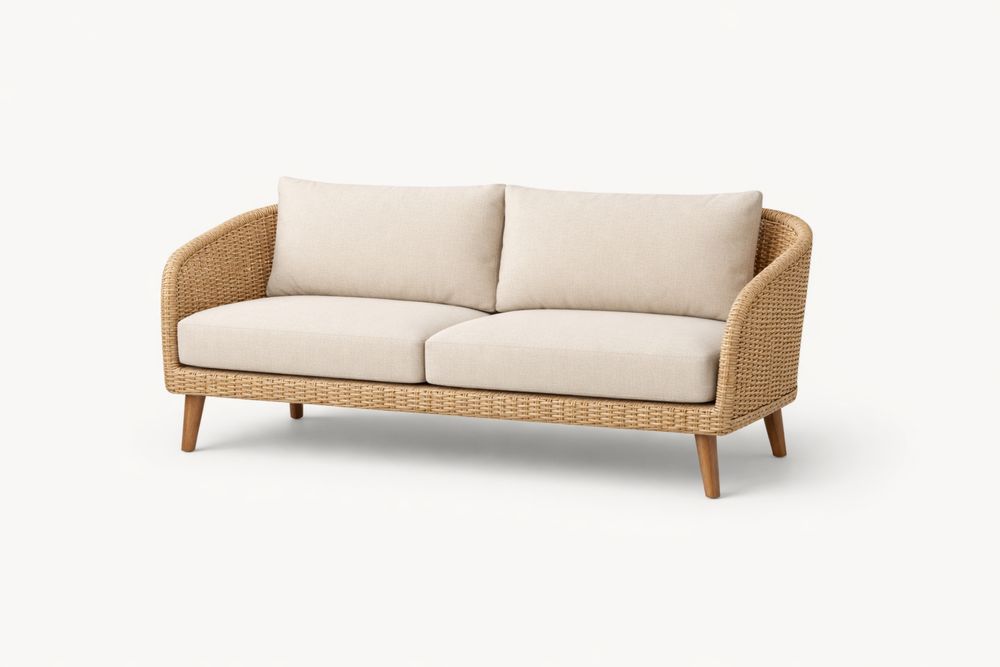 Canapé 2 places en rotin et tissu beige