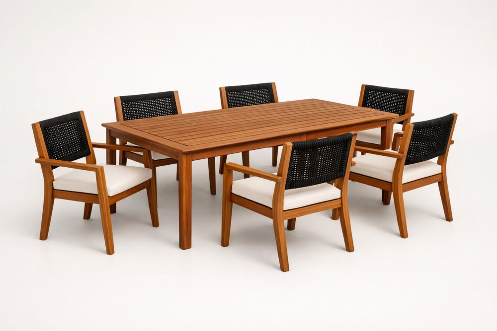 Ensemble de Salle à Manger en Bois d'acacia avec 6 Chaises
