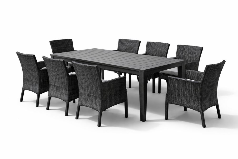 Ensemble de salle à manger extérieur 9 pièces en aluminium et résine tressée Noir