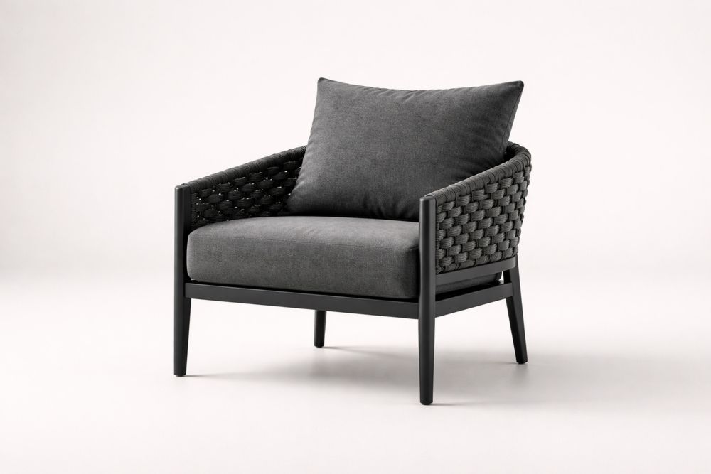 Fauteuil en aluminium avec dossier en corde et tissu polyester gris