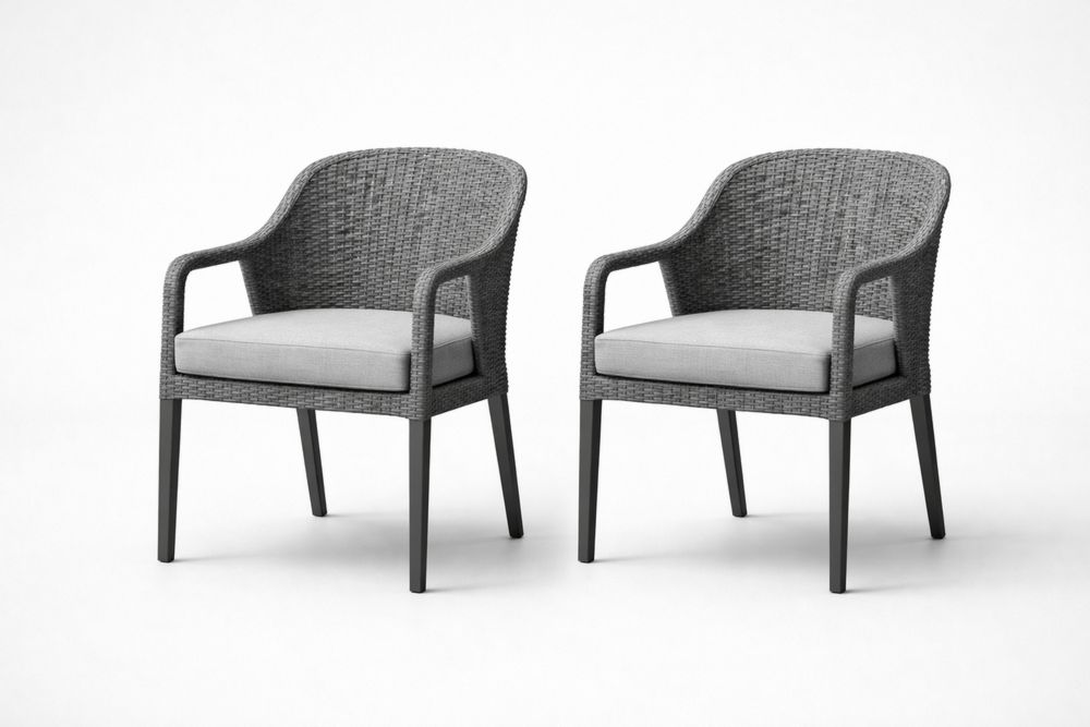 Lot de 2 fauteuils en résine tressée et aluminium avec coussins